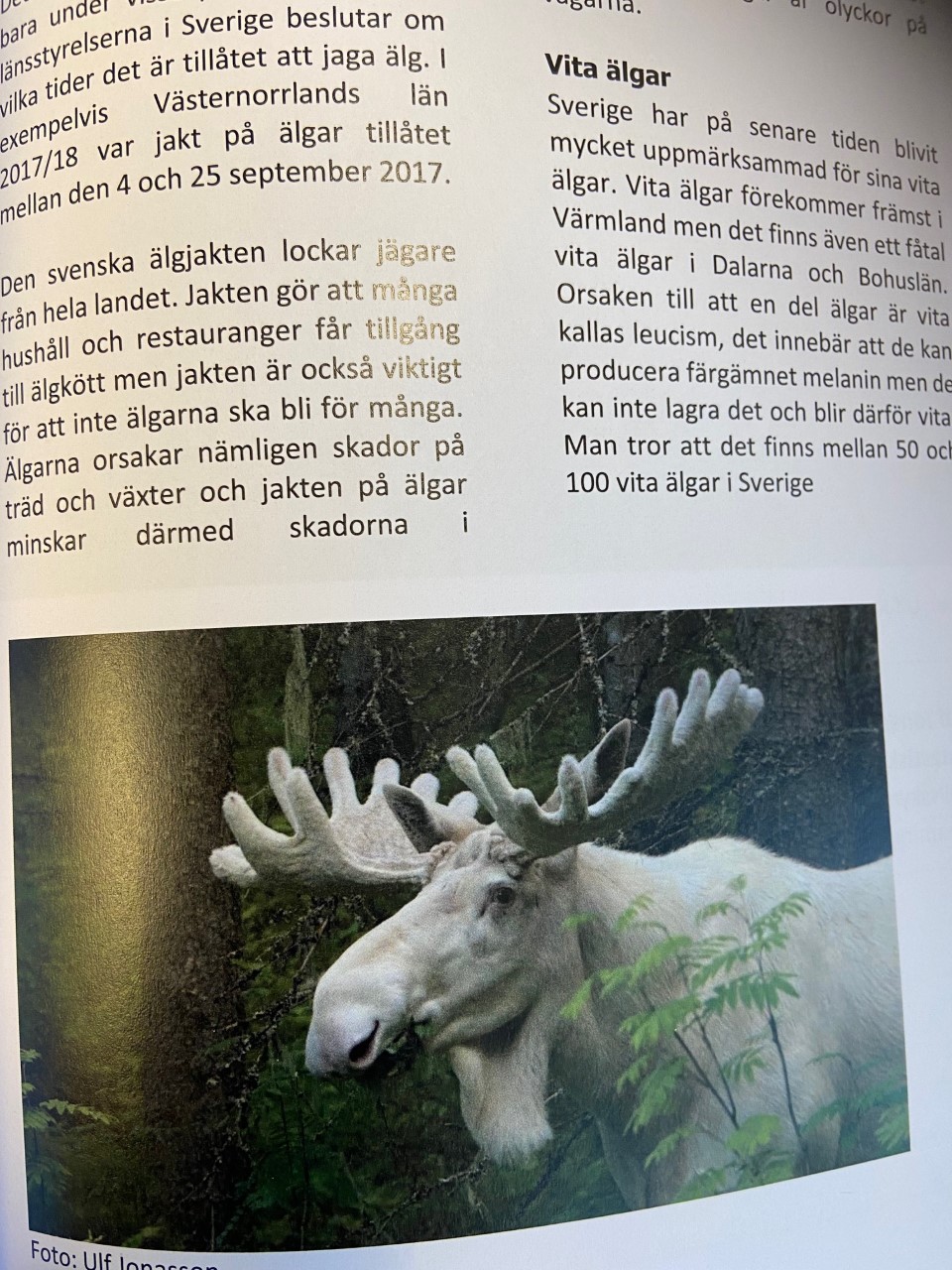 Den vita älgen på omslaget är fotograferad av Ulf Jonasson. Övriga omslagsbilder liksom de flesta av bilderna i boken är fotograferade av Jan Fleischmann.